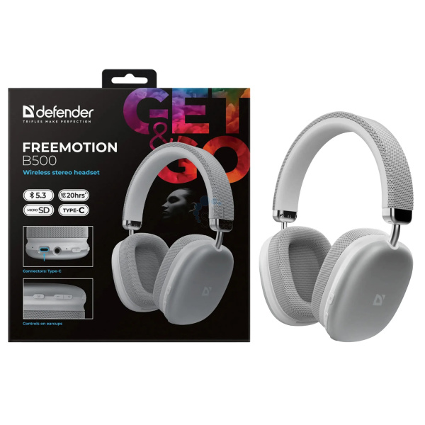 Наушники беспроводные с микрофоном Defender FreeMotion B500, Bluetooth, серебристый