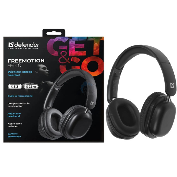 Канцтовары для работы, учебы и творчества! Наушники беспроводные с микрофоном Defender FreeMotion B640, Bluetooth, черный