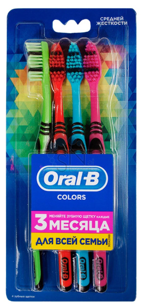 Канцтовары для работы, учебы и творчества! Зубная щетка ORAL_B Colors 40 Medium 4 шт