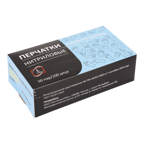 Канцтовары для работы, учебы и творчества! Перчатки нитриловые 50 пар (100 шт) размер L неопудренные КонтинентПак114428 синие