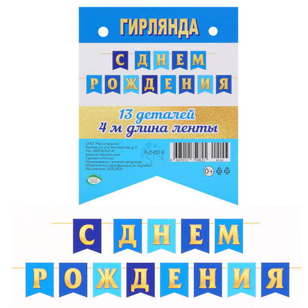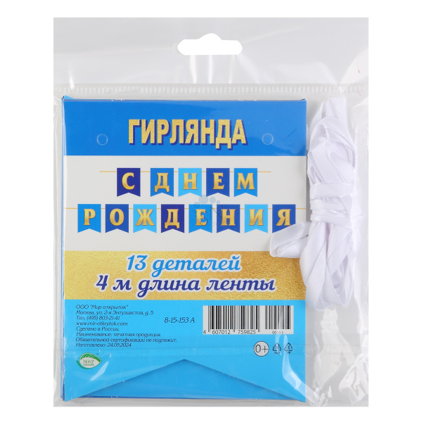 Открытка-гирлянда С Днем рождения! 400см Мир открыток 8-15-153А