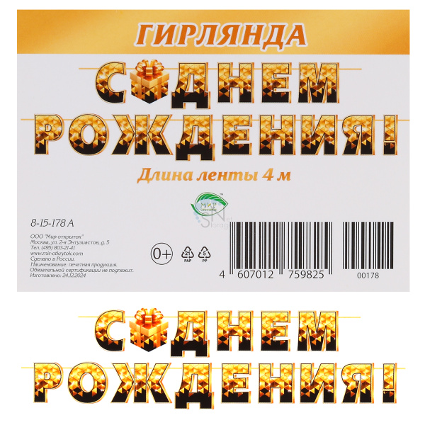 Открытка-гирлянда С Днем рождения! 400см Мир открыток 8-15-178А