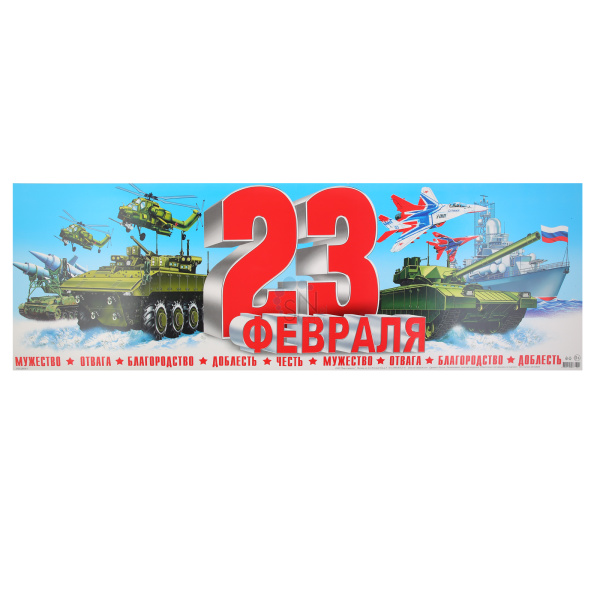 Плакат 23 Февраля С Днем защитника Отечества Мир открыток 297*920 мелов карт 0-03-23004А